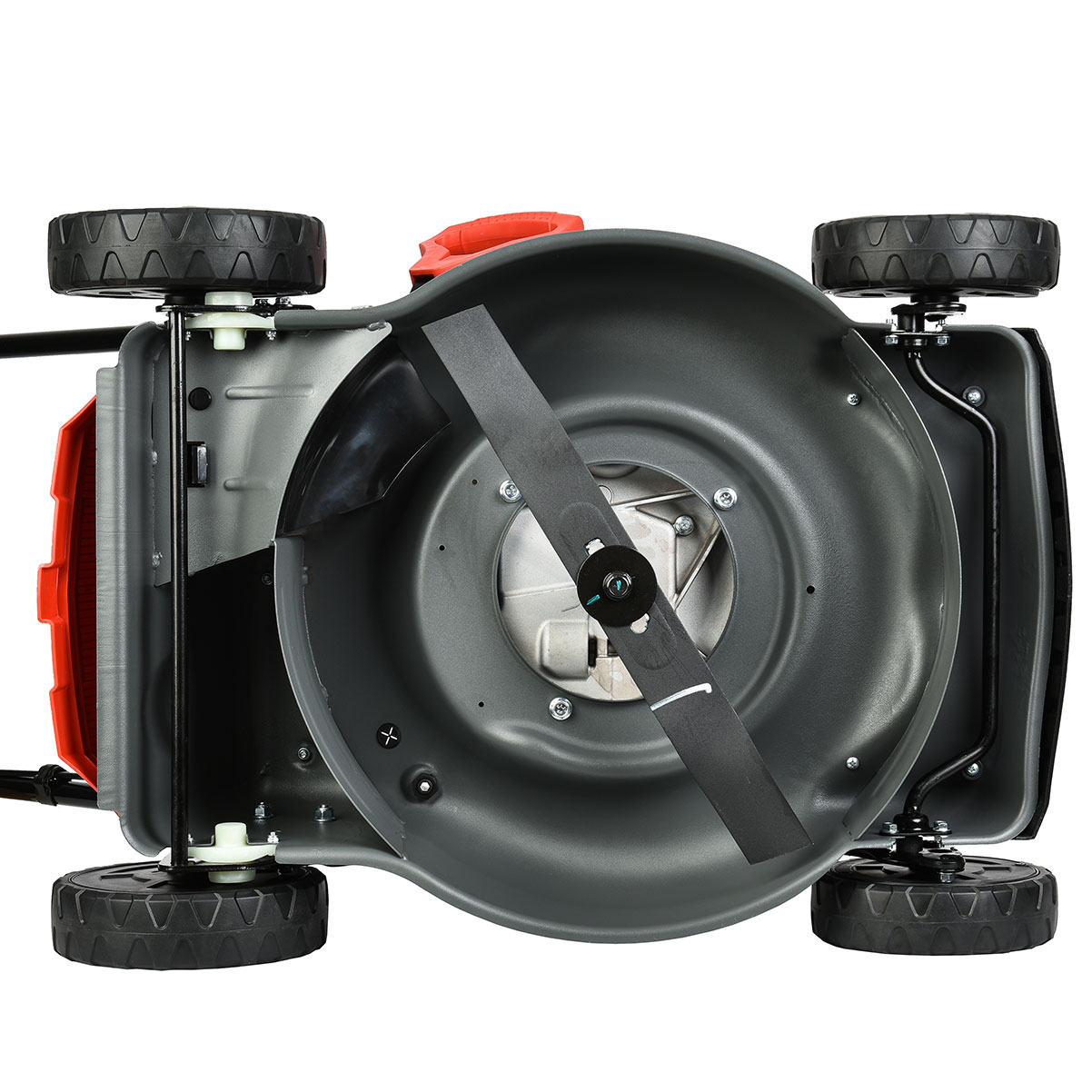 Газонокосилка EVOline LMG 46 CP оснащена надежным бензиновым двигателем Trex мощностью 3,9 л.с., который позволяет косилке справляться с густой и жесткой травой. Ширина кошения модели составляет 46 см, а высота кошения от 25 до 75 мм регулируется в 6 положениях. Корпус деки изготовлен из прочной стали. Для улучшения проходимости на неровных участках установлены колеса увеличенного радиуса. Антивибрационная рукоятка управления обеспечивает безопасность и удобство захвата.